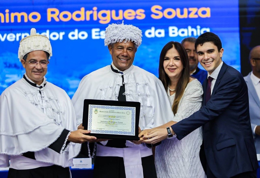Nesta sexta-feira (5), a Universidade Estadual de Santa Cruz (Uesc) comemorou 34 anos de estadualização com um marco histórico: a outorga do título de Doutor Honoris Causa ao governador e professor Jerônimo Rodrigues, que se torna o primeiro governador, em exercício da função, a receber a honraria na história da instituição. A sessão solene especial realizada pelo Conselho Universitário (Consu) celebrou a trajetória da universidade e reconheceu personalidades que contribuem de forma significativa para o desenvolvimento da Bahia e do país.