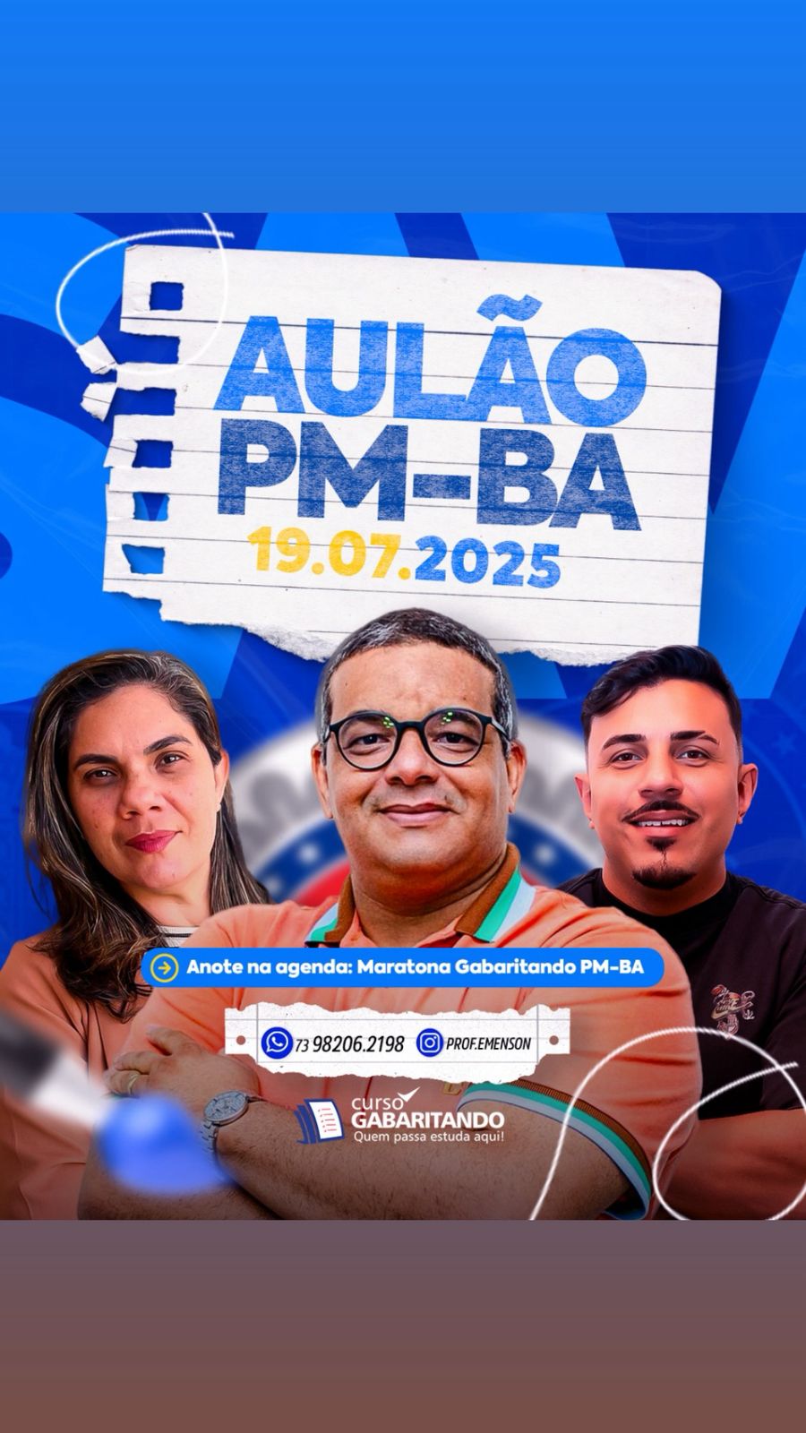Salva essa data 📆19/07 (Sábado) Maratona Gabaritando PM Bahia com os professores: