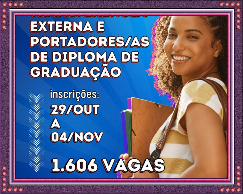 Saiba mais em: EDITAL Nº 36/2025 PROCESSO SELETIVO PARA REINGRESSO, TRANSFERÊNCIA EXTERNA E PORTADORES/AS DE DIPLOMA DE GRADUAÇÃO