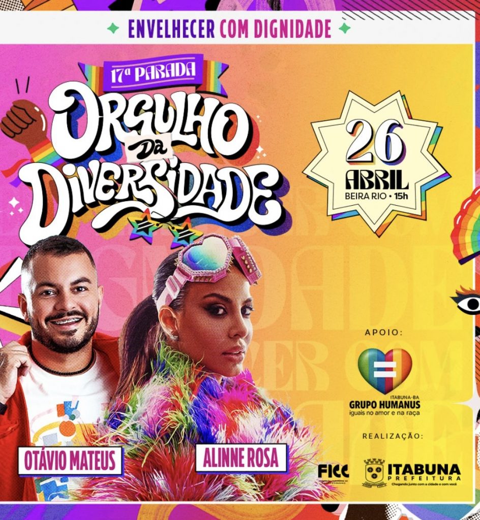 A 17ª Parada do Orgulho LGBTQIAPN+ de Itabuna traz como tema “Envelhecer com Dignidade”, propondo um debate sobre os desafios enfrentados pela população LGBTQIAPN+ ao longo da vida e, especialmente, na fase do envelhecimento.