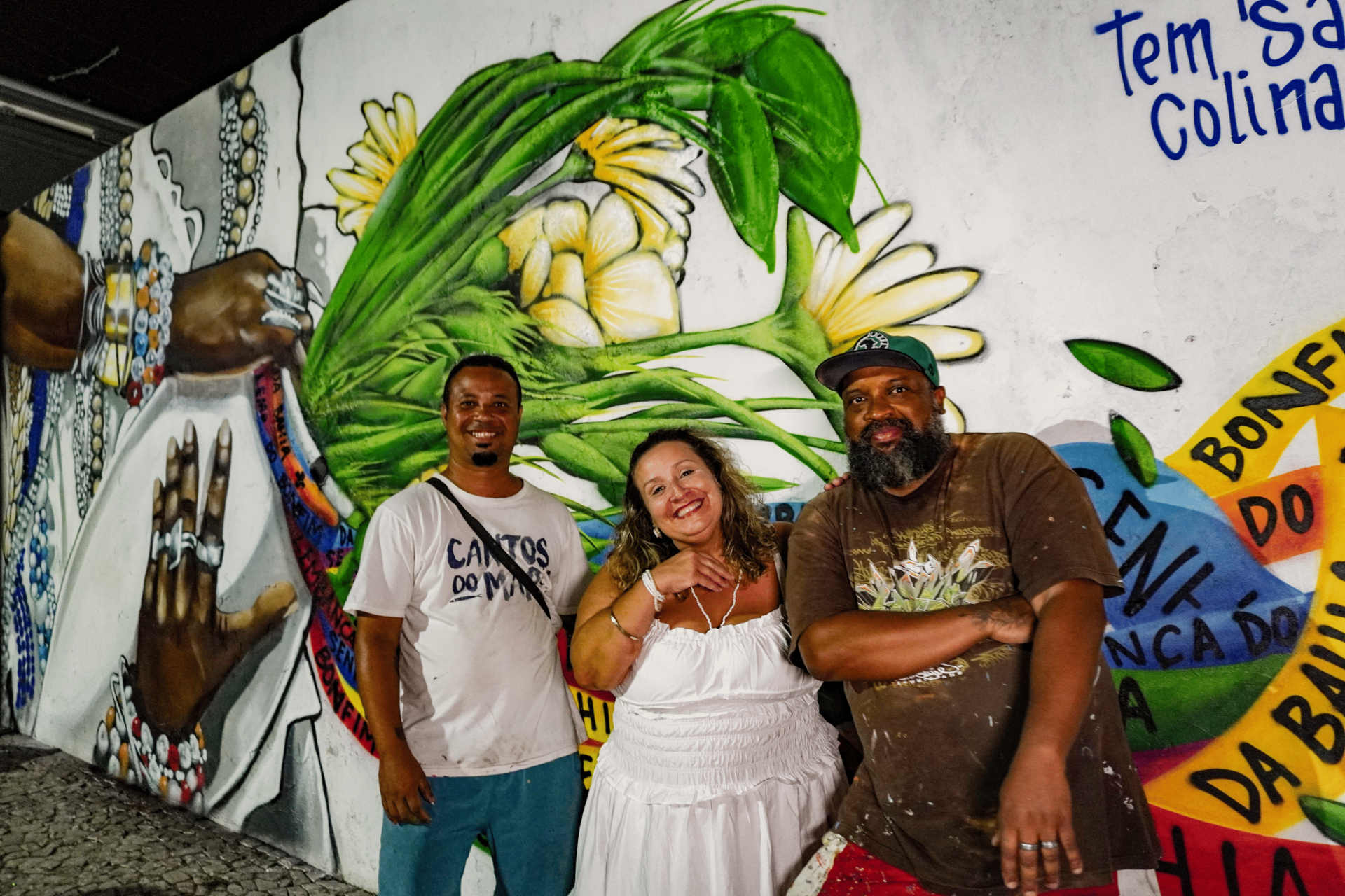 A obra é assinada pelos artistas Bigod e Prisk, integrantes do Coletivo MUSAS – Museu de Street Art de Salvador, nomes de destaque da arte urbana baiana. A intervenção integra o projeto Viva Salvador: arte, fé e tradição, iniciativa que utiliza o grafite como ferramenta de transformação urbana e valorização do patrimônio imaterial da capital. A iniciativa integra as comemorações pelos 20 anos da Viva Agência de Ideias, liderada por Paula Hazin.