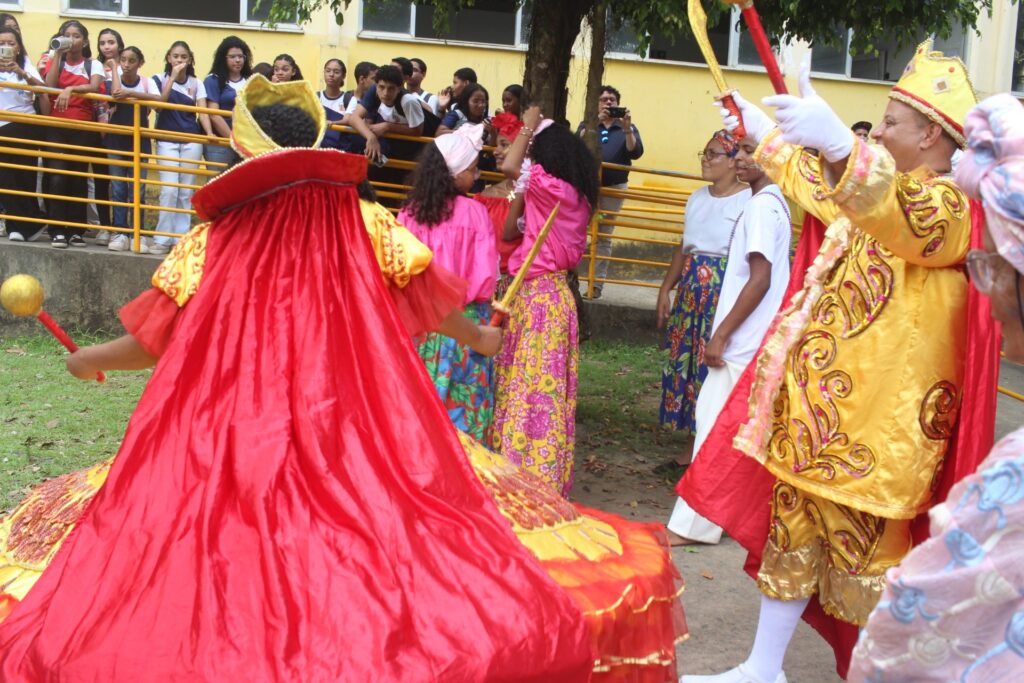Antes de chegar ao trajeto principal, o grupo realizou duas paradas especiais em escolas municipais: a Escola Municipal Heitor Dias e o IME – Instituto Municipal de Ensino Eusínio Lavigne, onde se apresentou para cerca de 500 estudantes. As apresentações aproximaram jovens das tradições do maracatu nação, fortalecendo vínculos comunitários e ampliando o alcance educativo do projeto “Maracatu Estrela nas Escolas: A Dança como Ferramenta de Descolonização”.