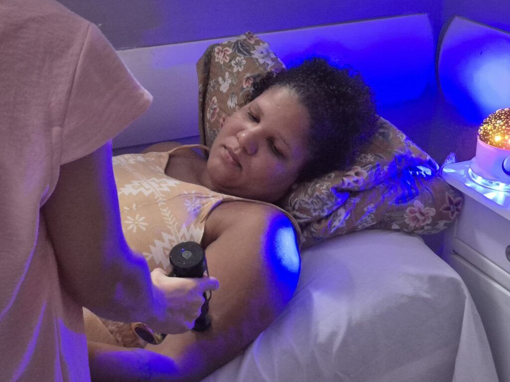Partindo dessa ideia, a comissão decidiu promover momentos de relaxamento surpresa para Queiliane. Ao lado do leito da filha, ela recebeu um ambiente preparado com música e sessões de massoterapia e cromoterapia — técnica que utiliza cores para promover o equilíbrio energético —, com foco em seu bem-estar físico e emocional.