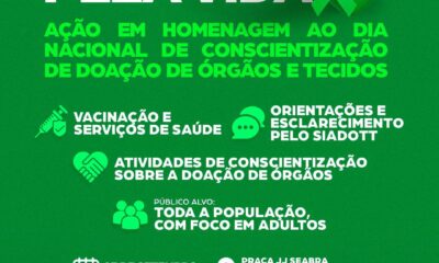 Evento acontece na Praça J. J. Seabra, a partir das 8h, com serviços de saúde e atividades de orientação sobre a importância da doação de órgãos...