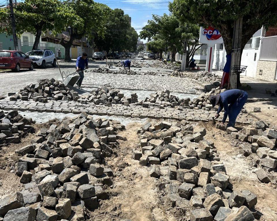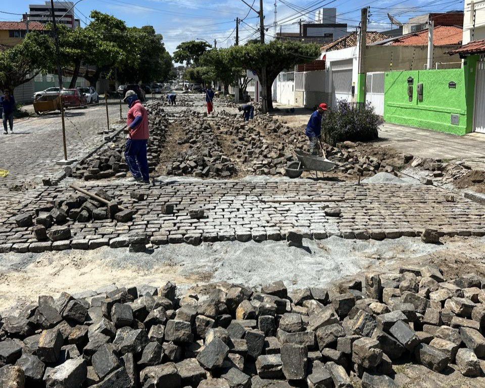A Prefeitura de Ilhéus, por meio da Secretaria de Infraestrutura e Defesa Civil, realiza serviços de reassentamento de paralelo em diferentes pontos da cidade. O trabalho inclui a Avenida Vereador Marcus Paiva, na Cidade Nova, o Eixo Local A, no bairro Hernani Sá, e a Praça Otávio Mangabeira, na Avenida Canavieiras.