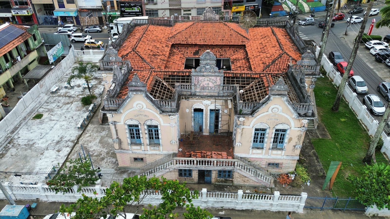 A Prefeitura de Ilhéus, por meio da Secretaria de Infraestrutura e Defesa Civil, está realizando uma ampla ação de manutenção preventiva e corretiva no prédio do antigo Grupo Escolar General Osório. Os serviços incluem reparos em toda a estrutura do telhado, forro e piso da unidade.