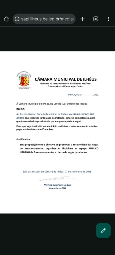 “Esse projeto está em discussão há bastante tempo, e somente agora foi compreendido e aprovado pelos meus colegas vereadores. Ilhéus precisa, com urgência, de um sistema de estacionamento rotativo, especialmente nas áreas centrais da cidade”, declarou o vereador Nerival Reis.
