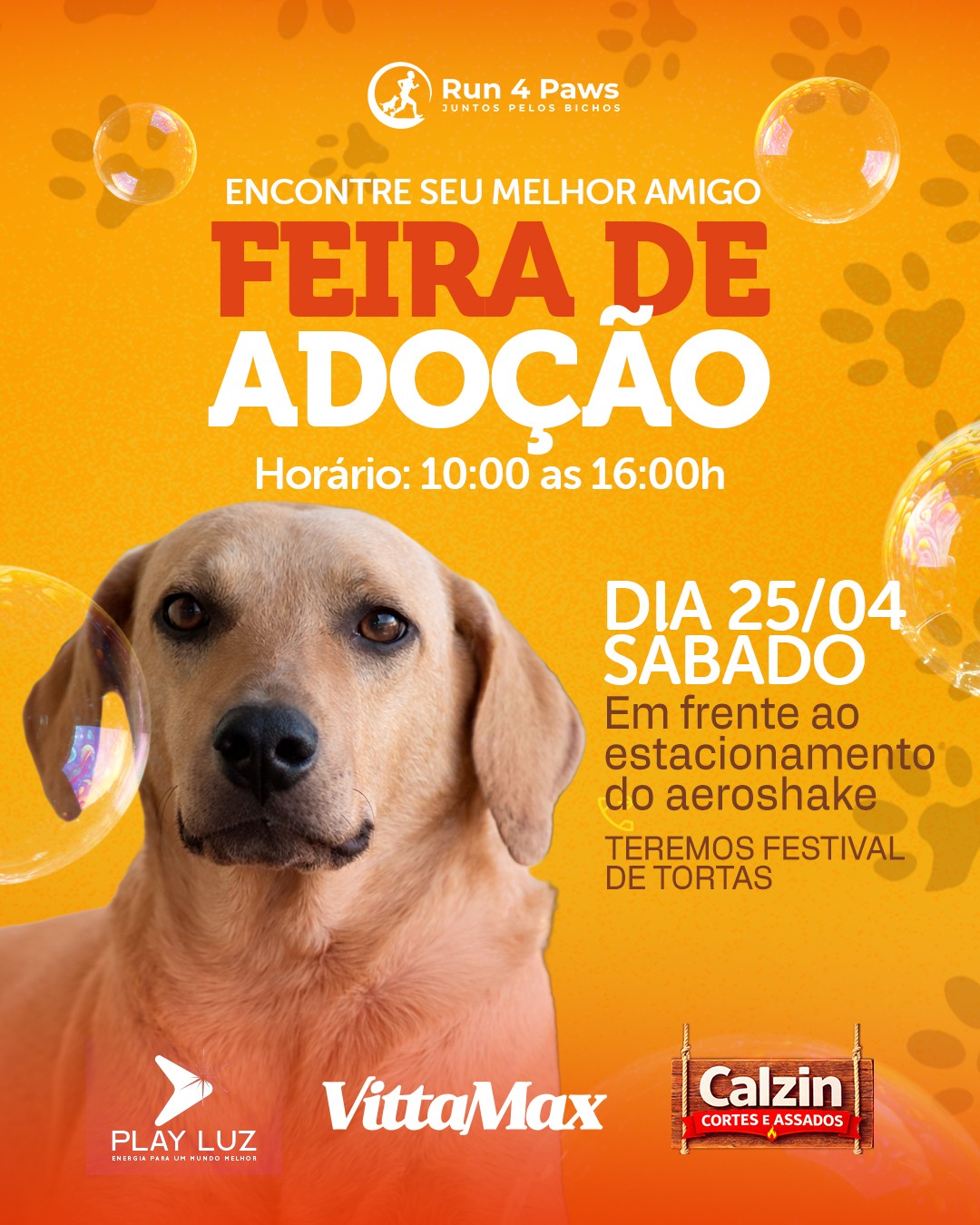 Além da corrida e caminhada, a ONG Planeta dos Bichos também realizará uma Feira de Adoção no sábado, 25 de abril, das 10h às 16h, no estacionamento em frente à Arena Central, próximo à Praça da Irene.
