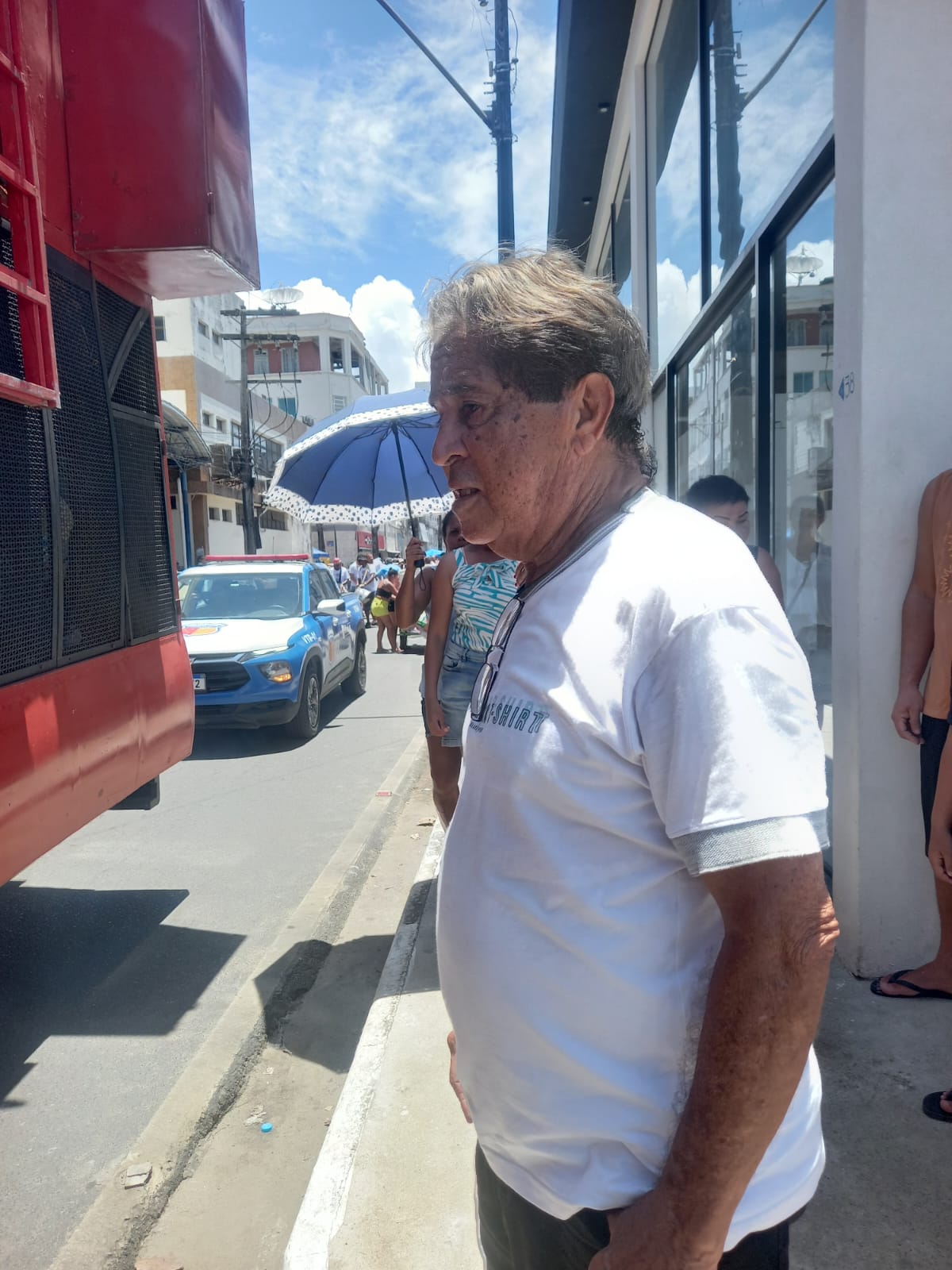 Durante o percurso do cortejo da Lavagem da Catedral, a equipe do Portal BOCA NEWS registrou imagens de Carlinhos Freitas visivelmente abatido, com semblante de tristeza e isolamento.