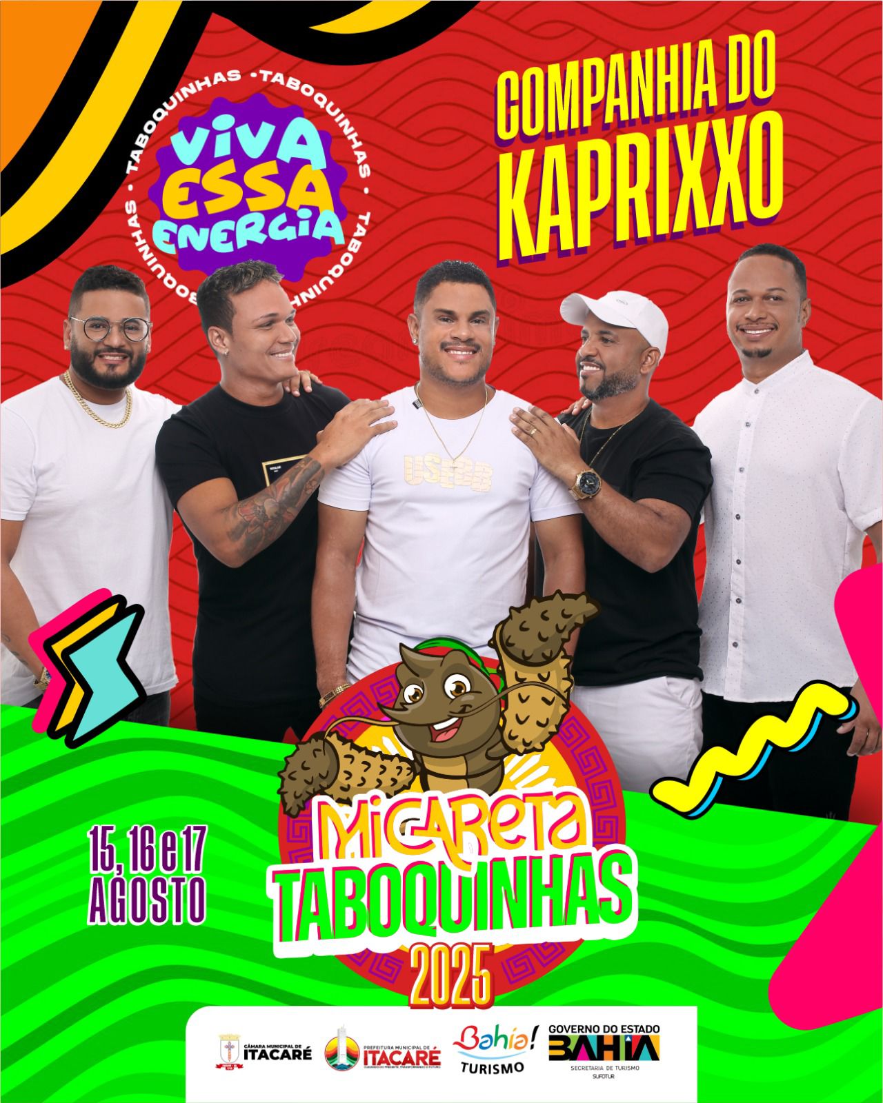 A contagem regressiva para a Micareta de Taboquinhas 2025 segue cheia de novidades! A Prefeitura de Itacaré anunciou mais uma atração que promete levantar o público na Arena Beira Rio de Eventos: a Companhia do Kaprixxo. Conhecida por seu repertório animado e envolvente, a banda chega para somar à programação que já está conquistando os foliões.