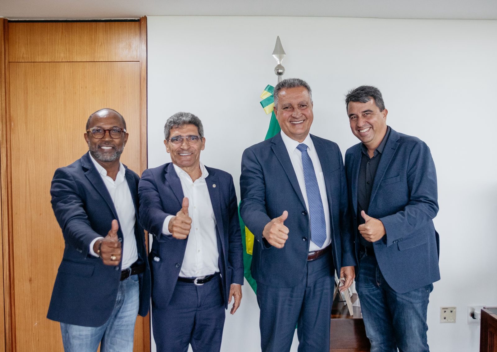O ministro da Casa Civil, Rui Costa, reuniu-se na última quarta-feira (11), no Palácio do Planalto, com o suplente de senador e pré-candidato a deputado federal, Bebeto Galvão, o ex-prefeito de Serrinha, Adriano Lima, e o deputado federal Raimundo Costa. O encontro teve como pauta o desenvolvimento da Bahia, com ênfase em infraestrutura, geração de emprego e destinação de recursos federais para os municípios.